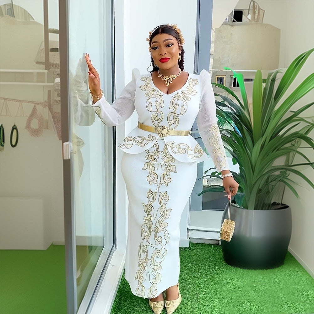 Women's Luxury Rhinestone Beaded V-neck Formal Dress